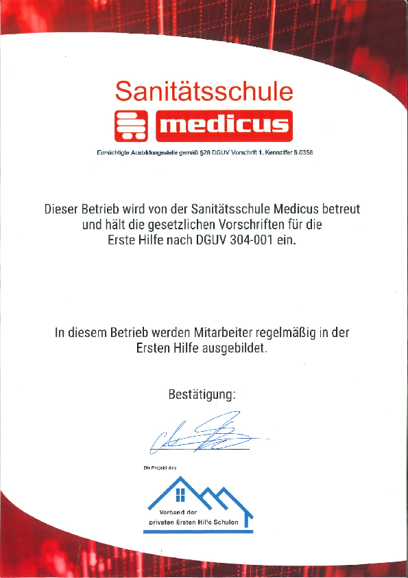 Bei der letzten Begutachtung unserer Einrichtung wurde folgendes Ergebnis erreicht: